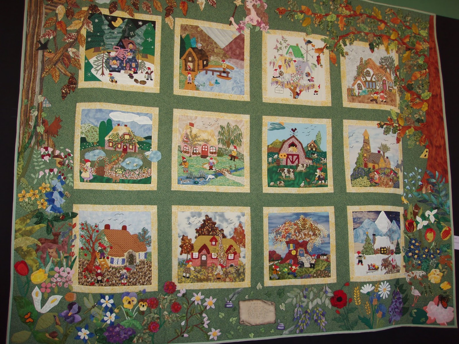 como cada año muy bonito con la exposición de «quilts de leyenda» y un concurso muy bonito, en el que tenian unas fotos de alimentos, queso, etc y tenían que crear algo simulando esas fotos.