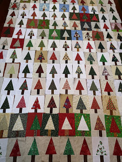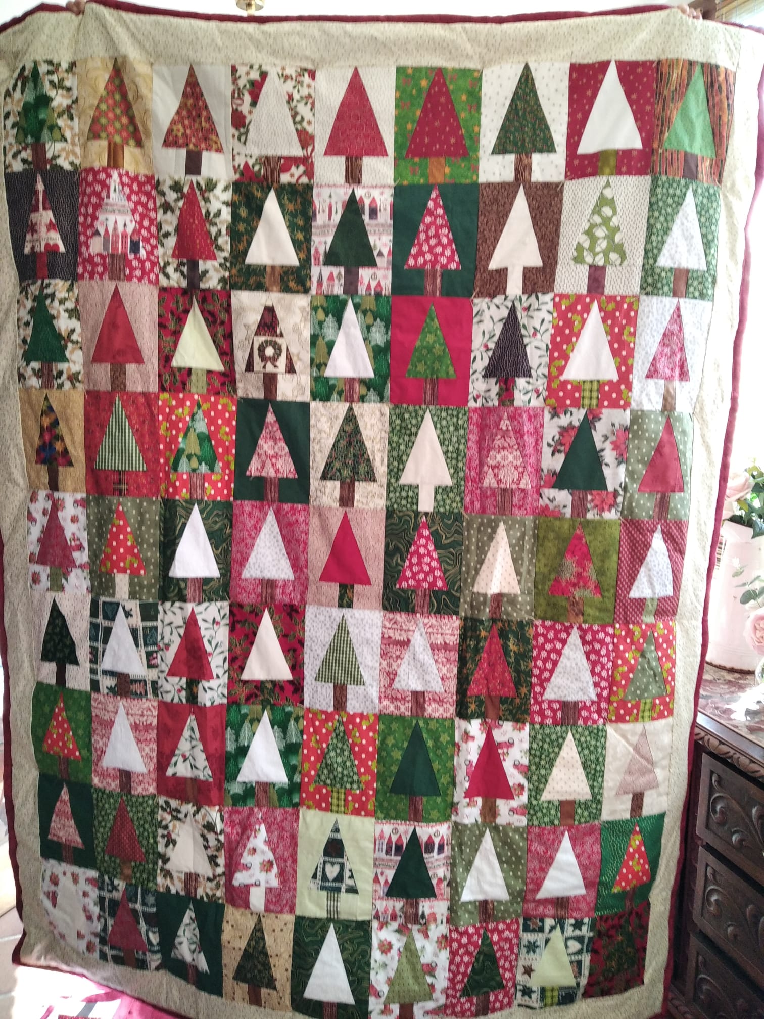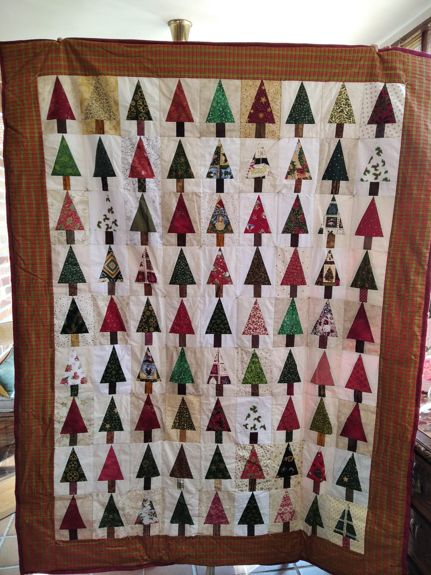 Durante todo este año, ella ha trabajado intensamente y ha hecho mas pinos, y al final, no es que ha creado un quilt, ella ha hecho tres.