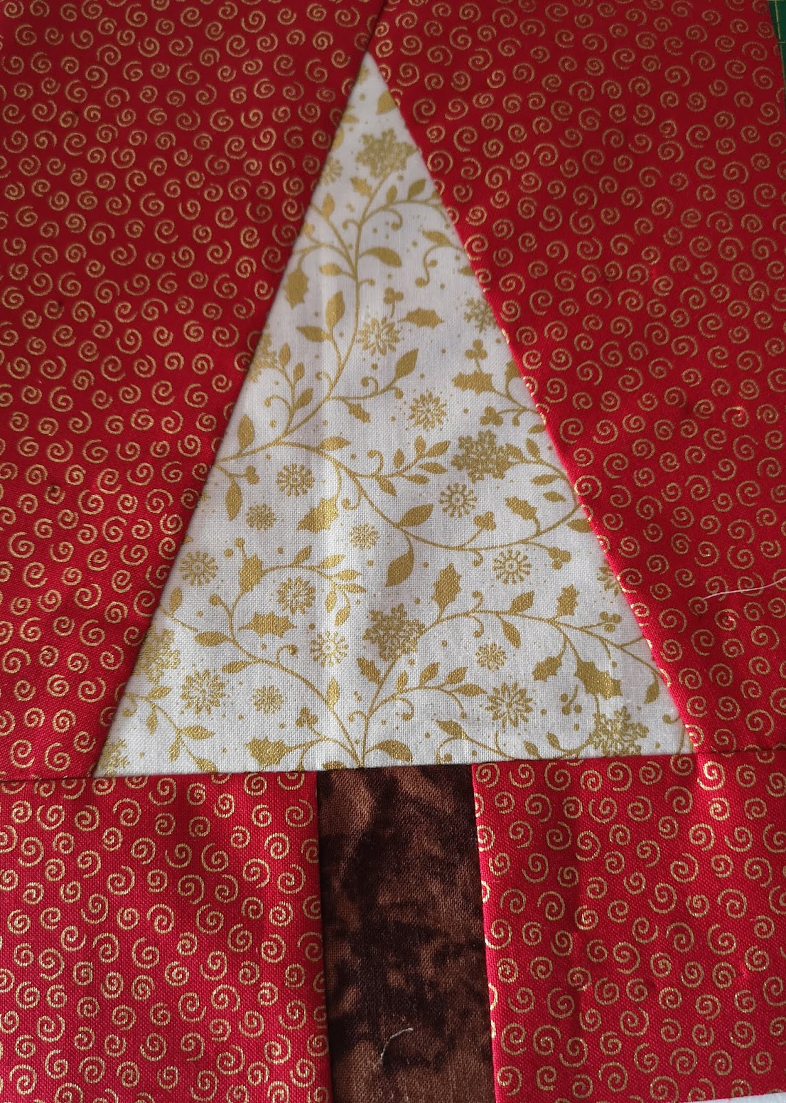 diferente a los cinco anteriores, se trataba de hacer pinos, sobre una entretela, con patrón debajo (un paper-piecing).