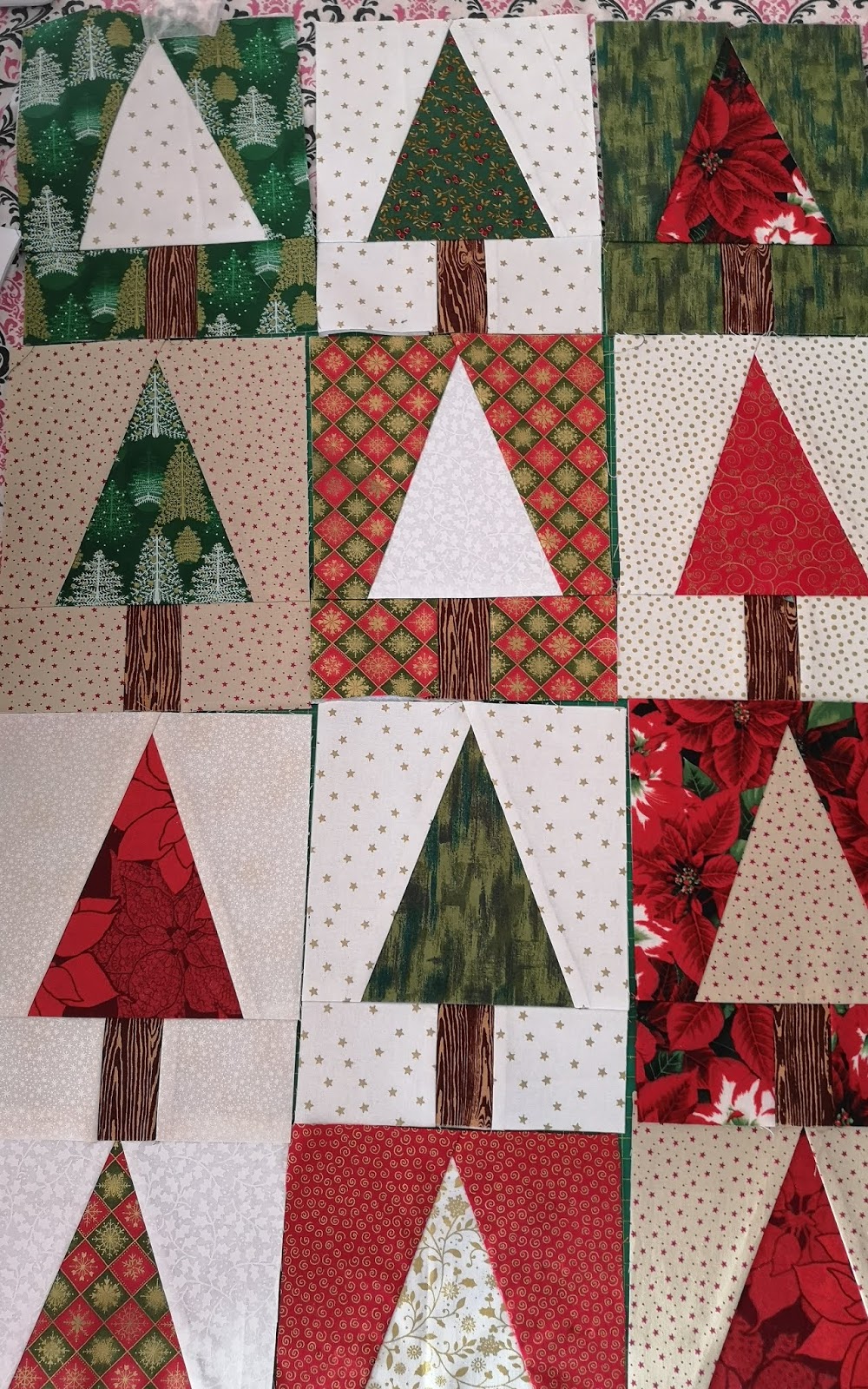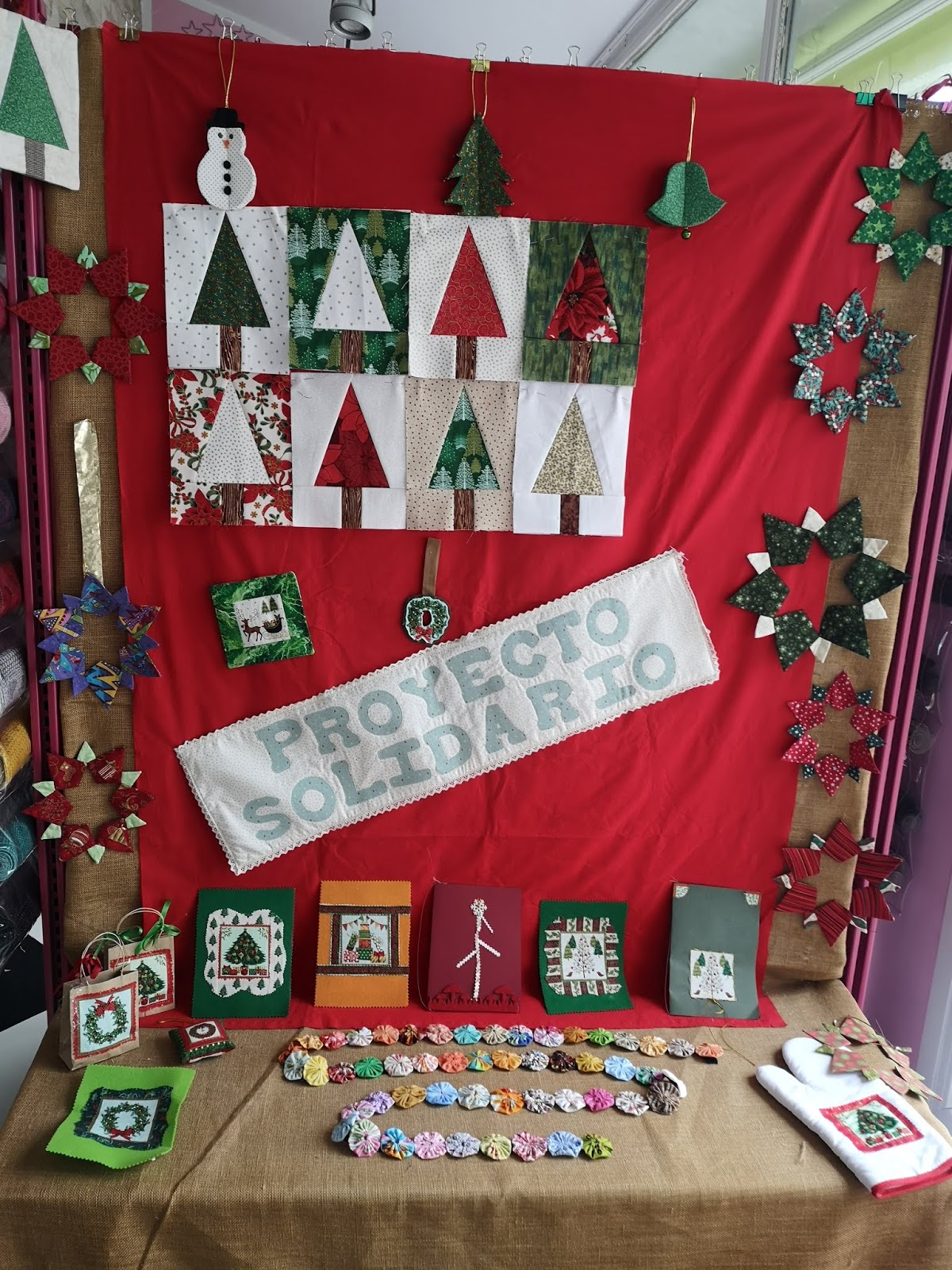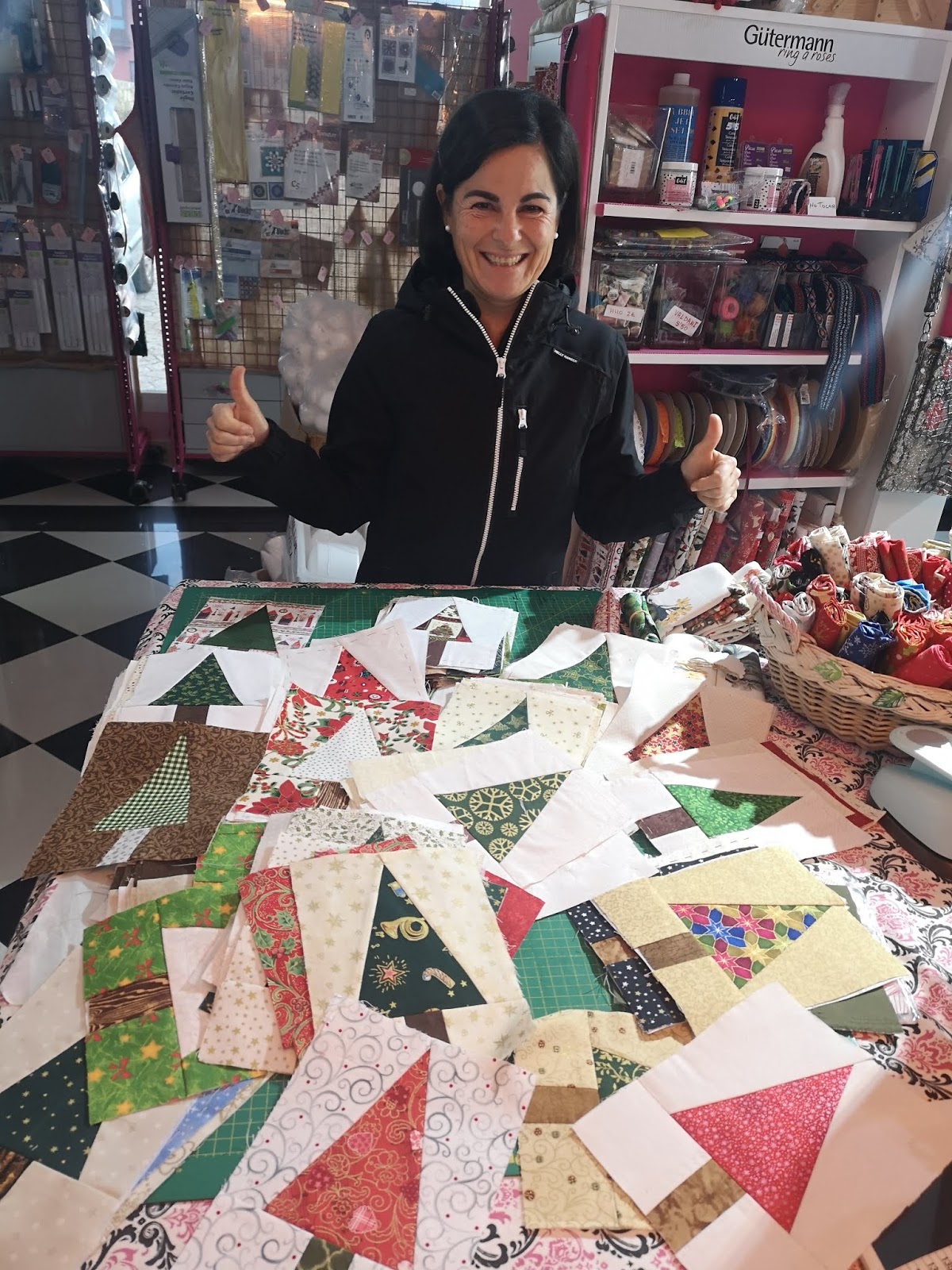 Las bases eran muy sencillas, para los participantes hacer el pino, enviárnoslo con 5€ y nosotros le regalábamos una telita, y la inscribíamos en la lista de participantes para el sorteo, el día 8 de diciembre, día de la Inmaculada.La ganadora se llevaba los pinos, guata y trasera para terminar el quilt,