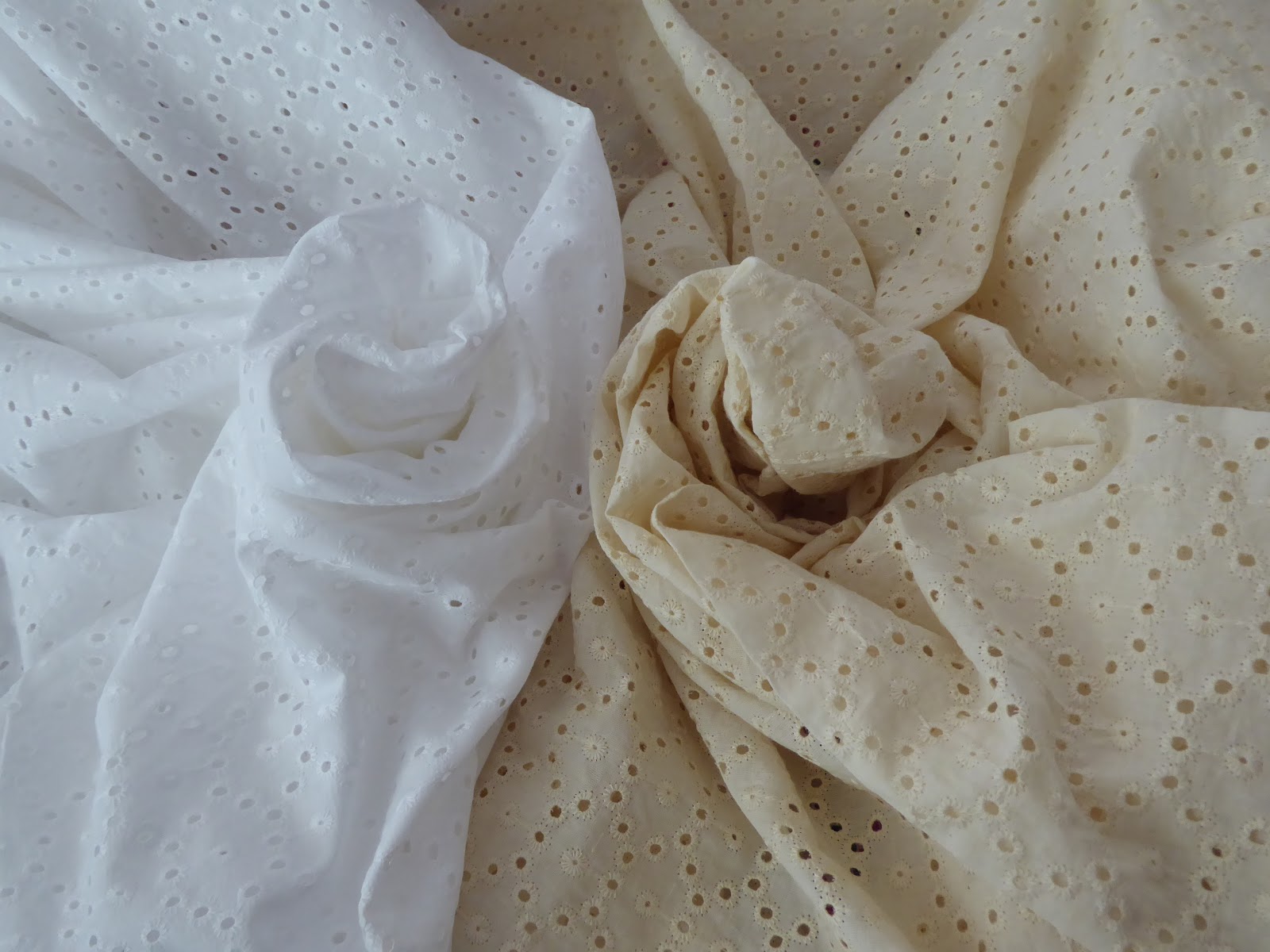 Encajes y telas bordadas con agujeros, que cada uno le da un nombre, bordado suizo etc